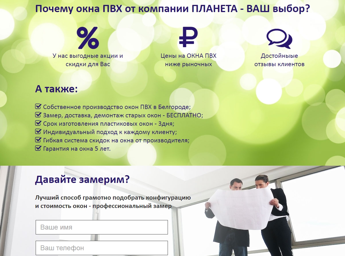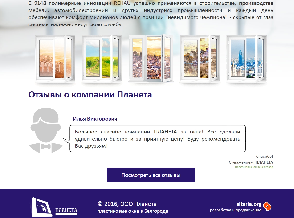 Необходимо было создать сайт для компании, производящей пластиковые окна. Основная концепция - направленность на продвижение и клиентоориентированное наполнение.