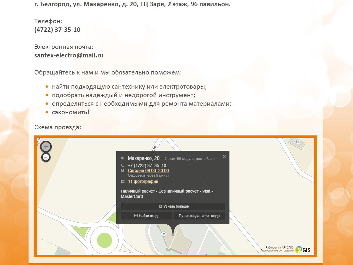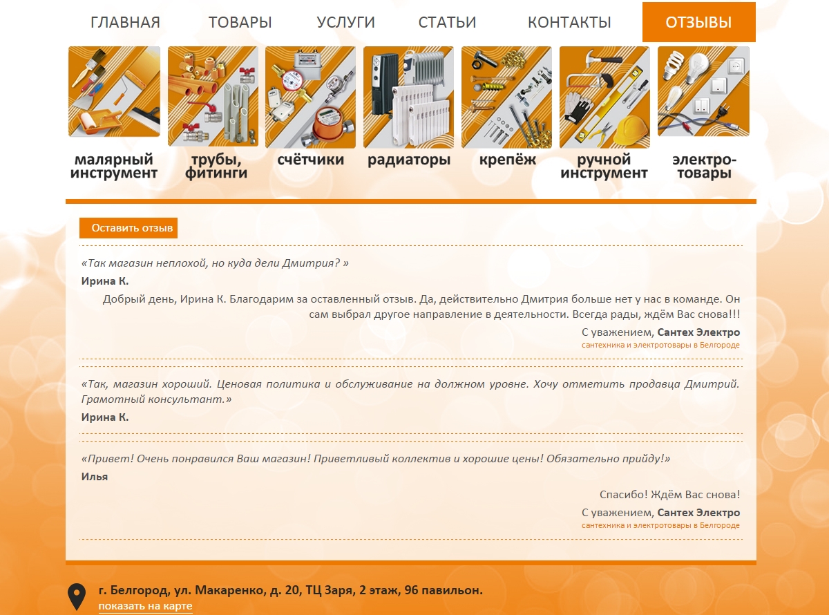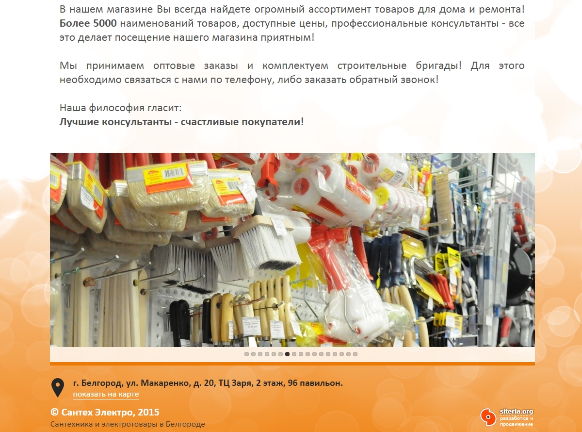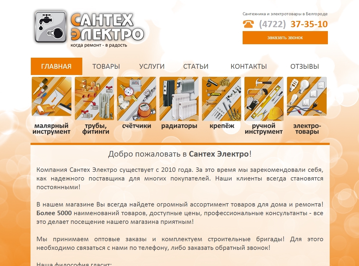 Необходимо было разработать сайт в Белгороде для оптово-розничной компании, занимающейся реализацией сантехники и электротоваров. Использовались фирменные цвета.