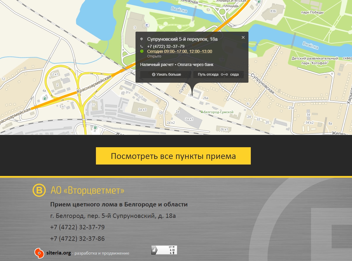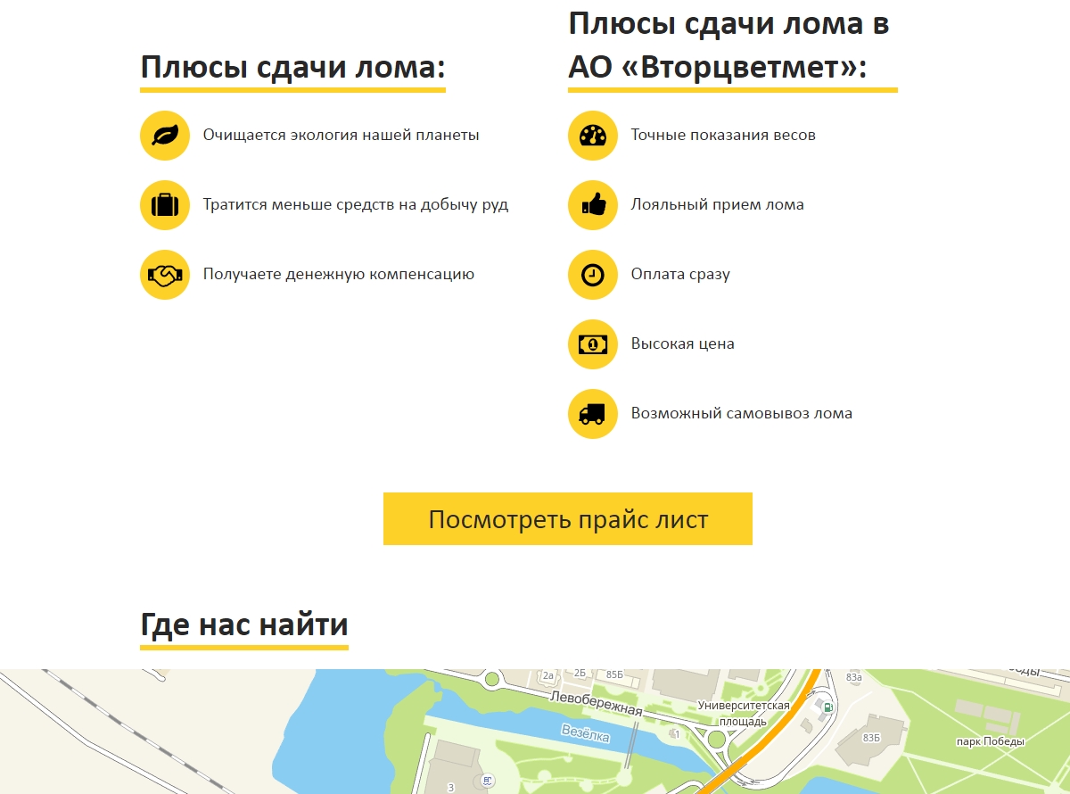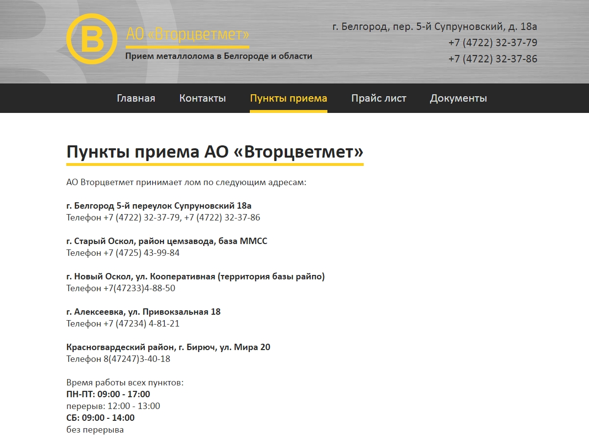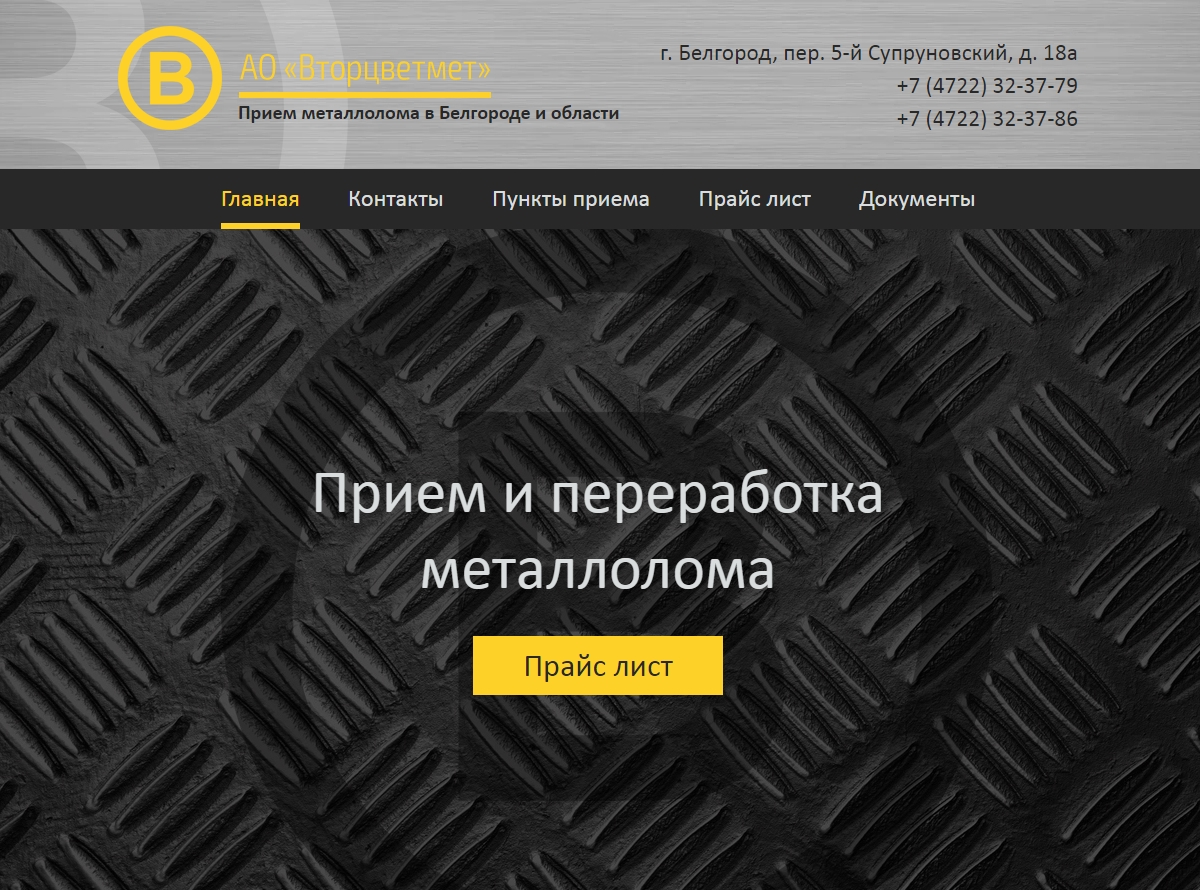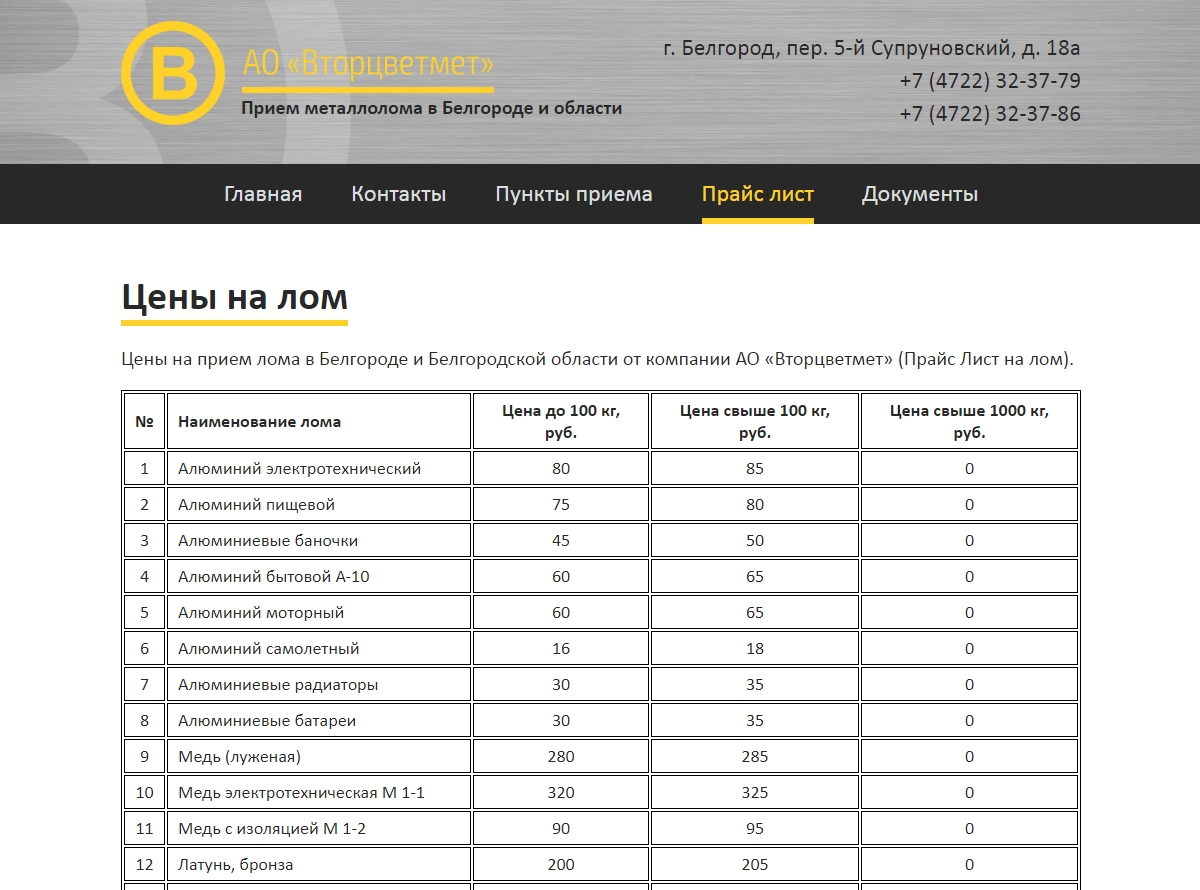 Необходимо было создать сайт для торговой компании, специализирующейся на приеме и переработке цветного лома. На сайте представлены услуги компании, контактная информация, а также редактируемый прайс-лист.
